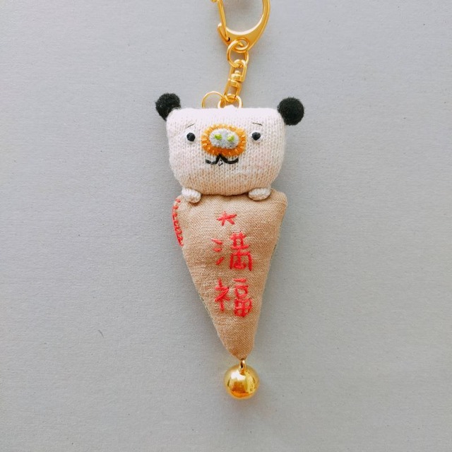 ぱっと見、お魚っぽいけどお魚じゃないよ! 福熟語のフラッグを持ってる風のおじさんです。 高さ:10cm前後(チェーン除く)